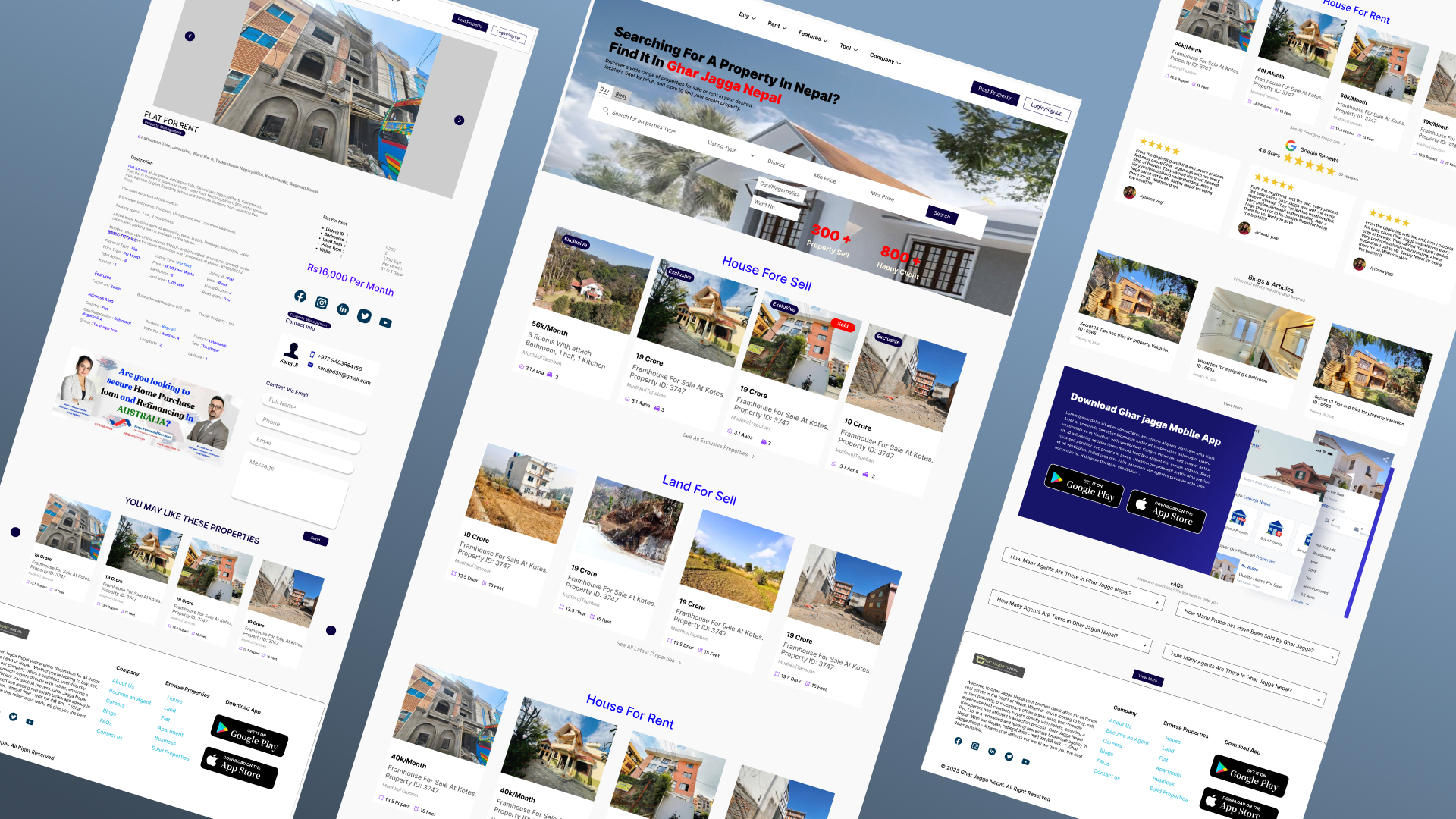 Designed visually appealing website for property buying, renting, and selling. The platform features a clean layout, advanced search filters, and interactive property listings to enhance user engagement. Focused on creating an intuitive user experience with clear call-to-actions, organized property categories, and a seamless browsing flow across devices. The design aimed to boost user trust and drive conversions by balancing aesthetics with functionality.